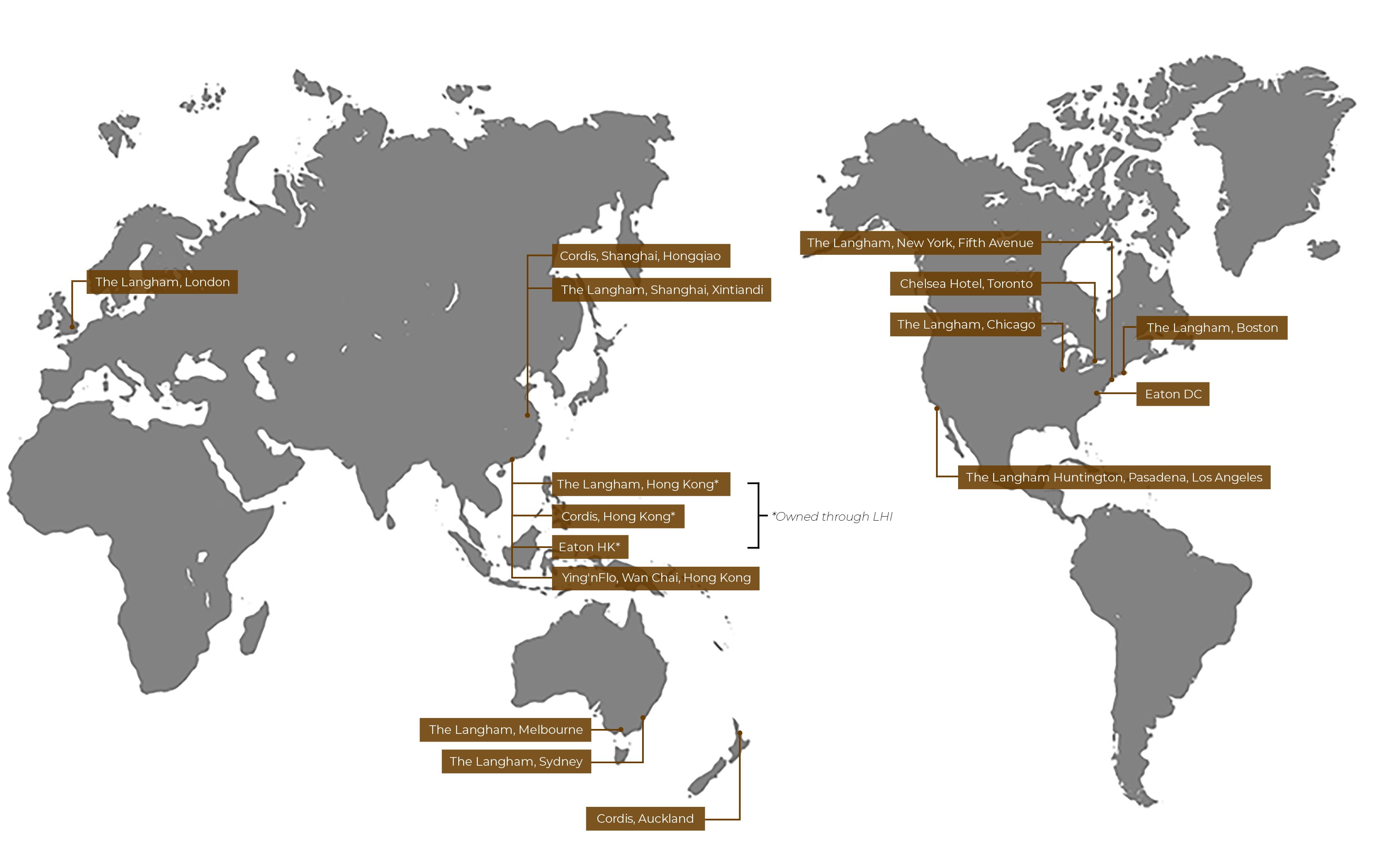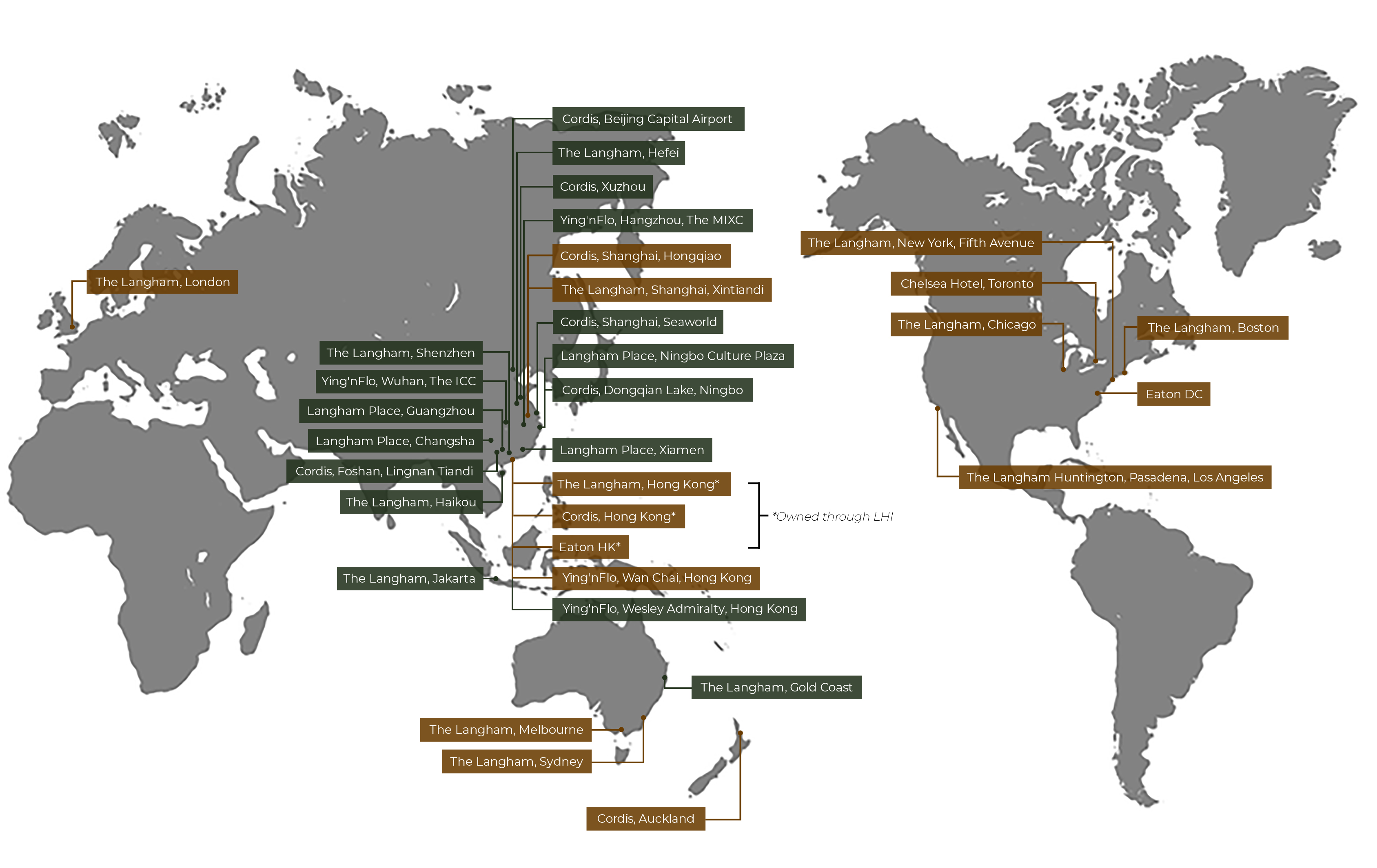 Apart from the hotels owned and part-owned by the Group, Langham Hospitality Group also manages hotels for third parties under the brands of The Langham, Cordis and affiliated brands.